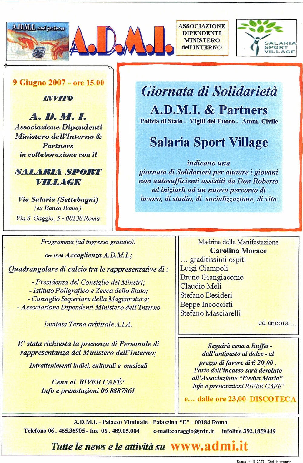 Presso lo Sport Village di via Salaria insieme alle squadre dell” Istituto poligrafico dello Stato, Consiglio Superiore della Magistratura e Associazione dipendenti Ministero dell’Interno, giochiamo un quadrangolare di calcio a favore dei giovani non autosufficienti assistiti da don Roberto.