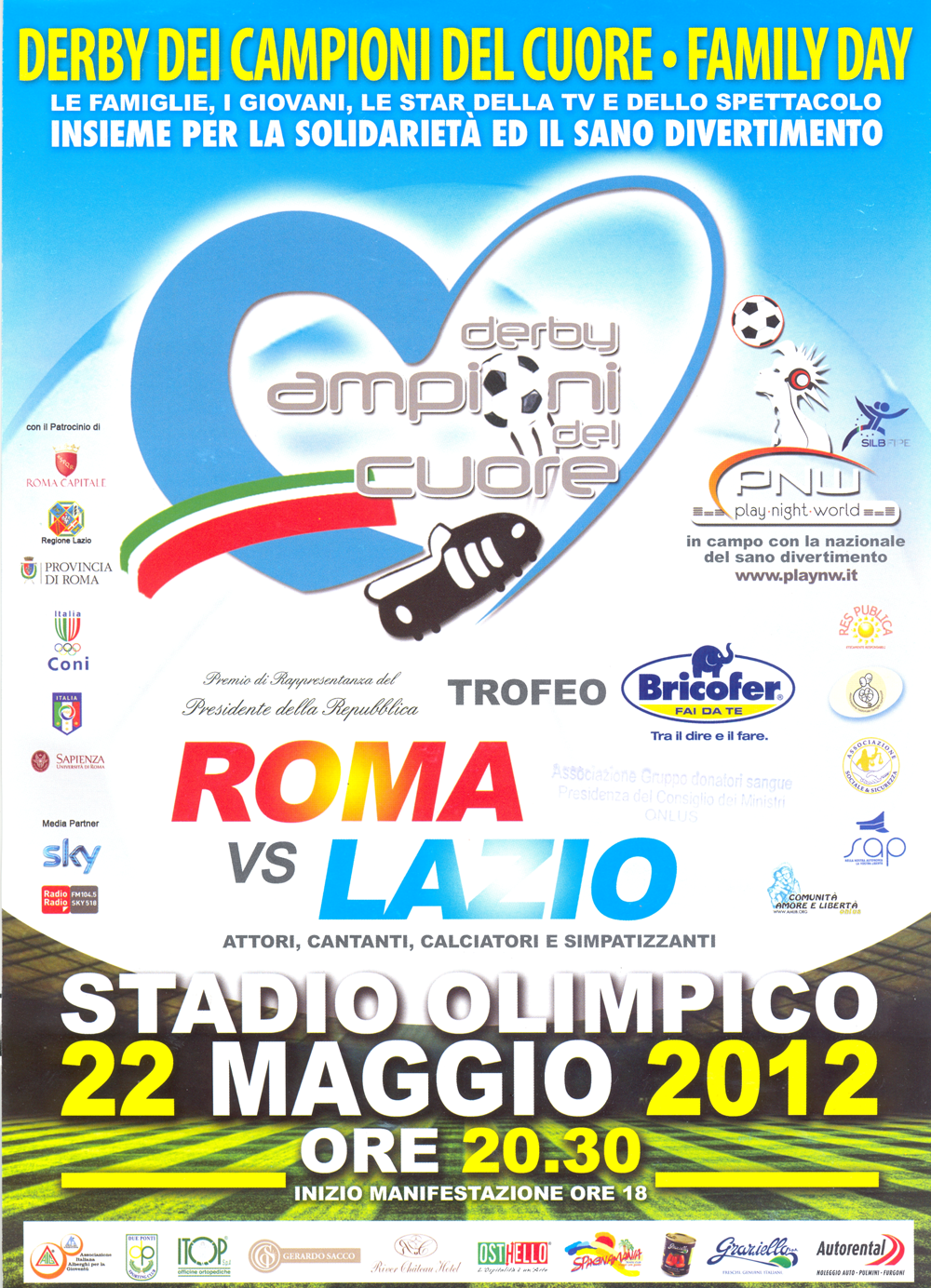 La manifestazione di quest’anno “Derby dei campioni del cuore – Family Day” si svolgerà martedì 22 maggio 2012 allo Stadio Olimpico.