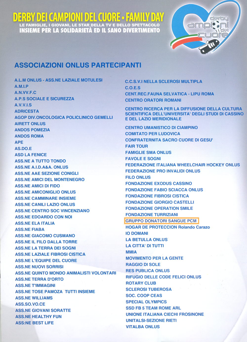 Anche quest’anno siamo presenti e partecipiamo alla manifestazione di solidarietà tra attori, cantanti, calciatori e simpatizzanti che scendono in campo con le maglie della Roma e della Lazio.