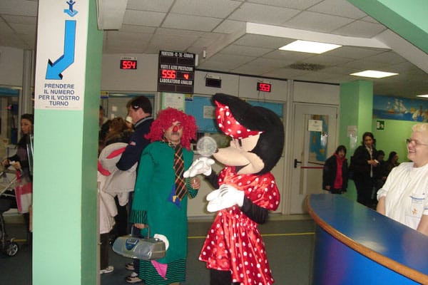 Così, mentre un paio di simpatici animatori intrattenevano i bimbi coinvolgendoli in giochi e baby dance, altri volontari mascherati andavano in visita ai piccoli pazienti impossibilitati a recarsi in ludoteca.