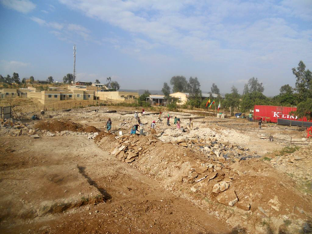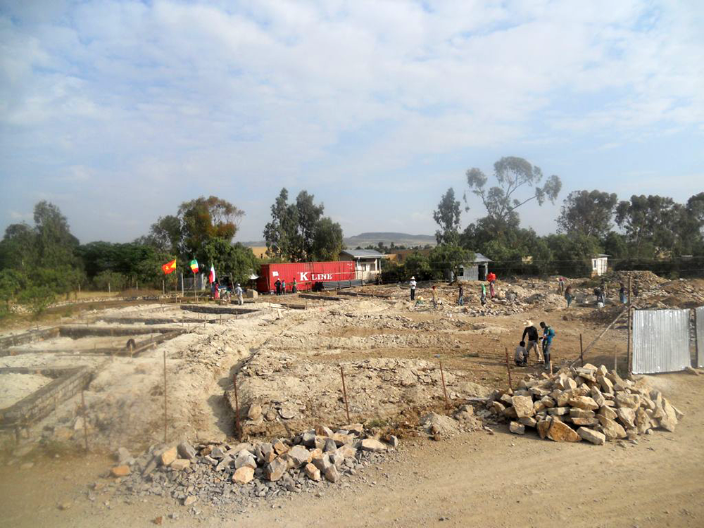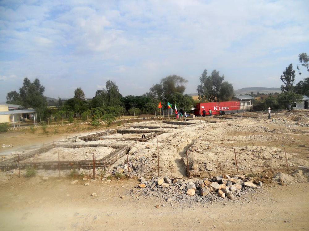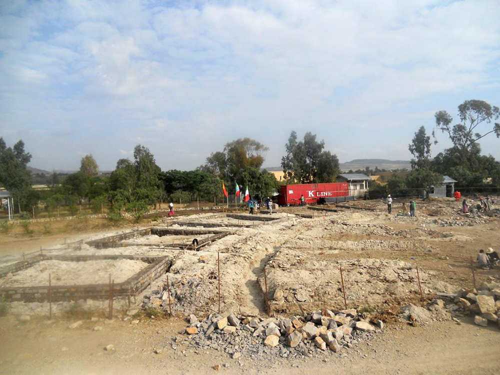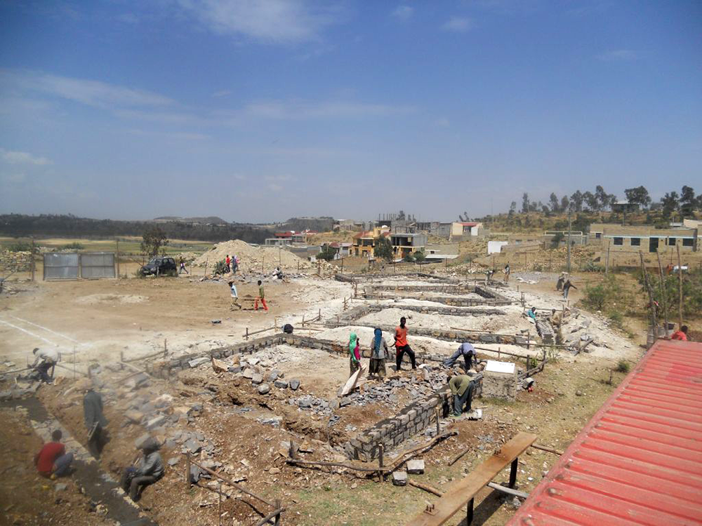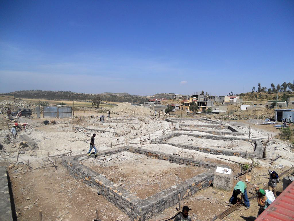 I lavori per la costruzione del Centro procedono. Dopo la preparazione del terreno si cominciano a vedere gli spazi perimetrali e le prime pietre delle unità abitative. Il Centro sta cominciando a prendere forma.