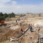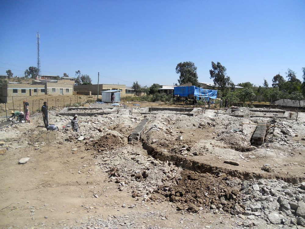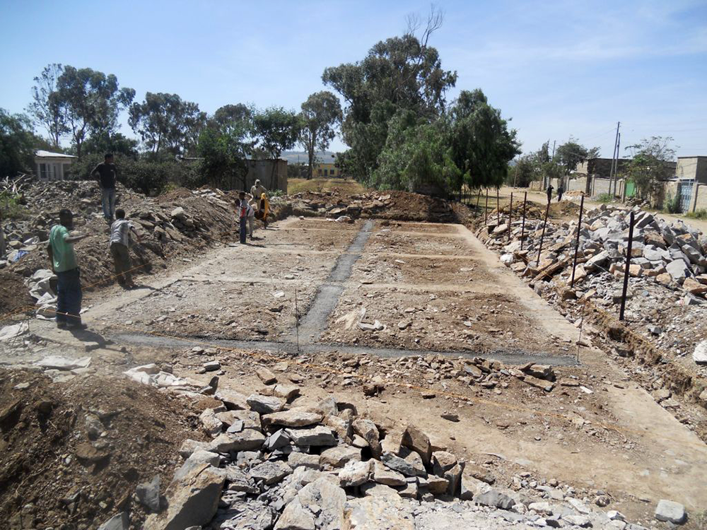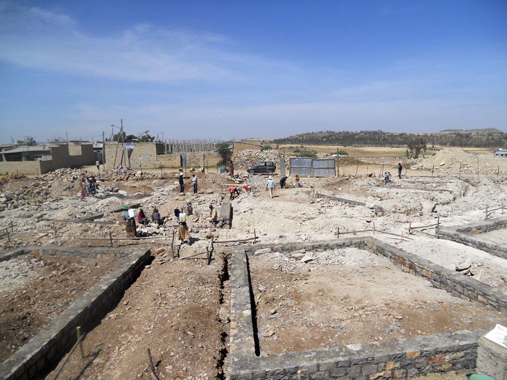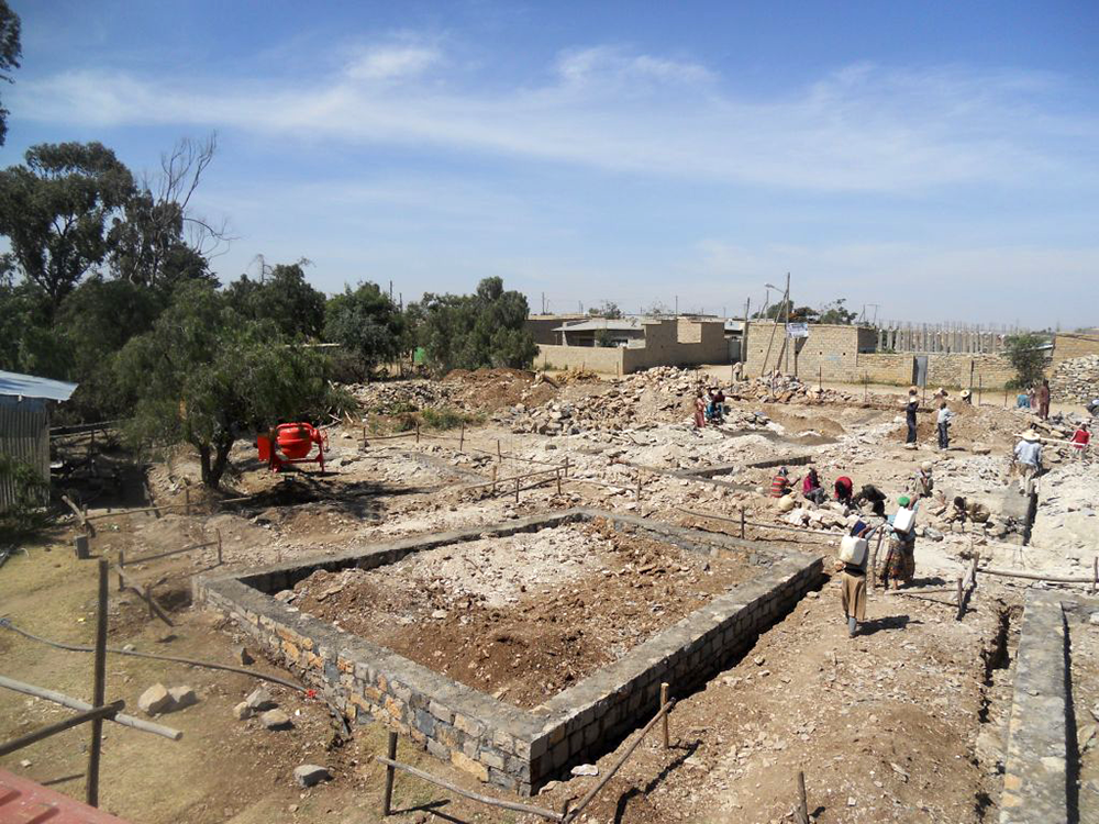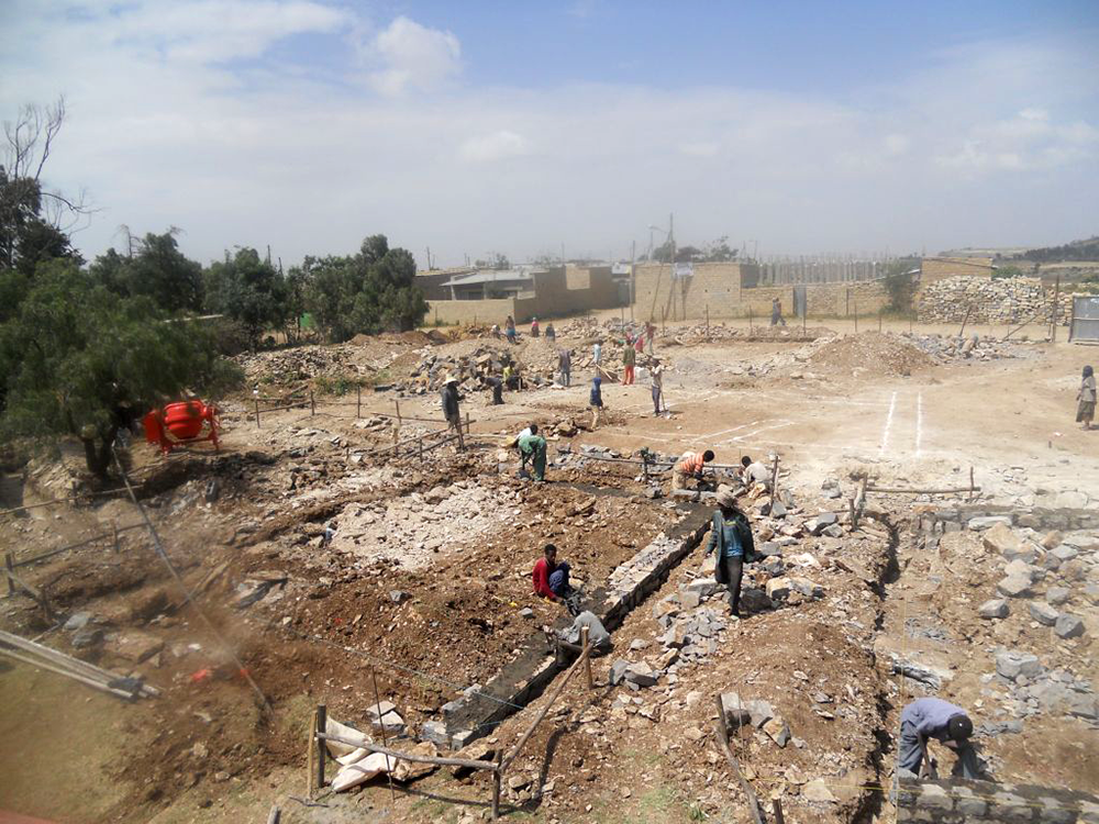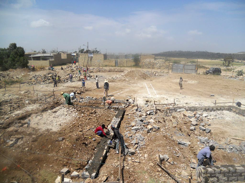 I lavori per la costruzione del Centro procedono. Dopo la preparazione del terreno si cominciano a vedere gli spazi perimetrali e le prime pietre delle unità abitative. Il Centro sta cominciando a prendere forma.