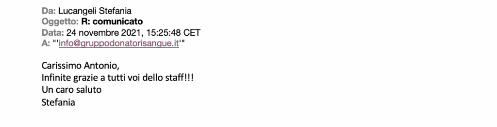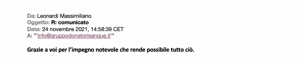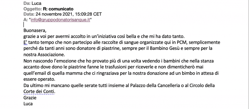 La gratitudine è rivolta principalmente a tutti quei donatori che con la volontà e il tempo che ci dedicano aiutano a tenere vivo, da molti anni, il progetto di collaborazione con il Bambino Gesù, ottenendo visite extra, riconoscimenti, medaglie.