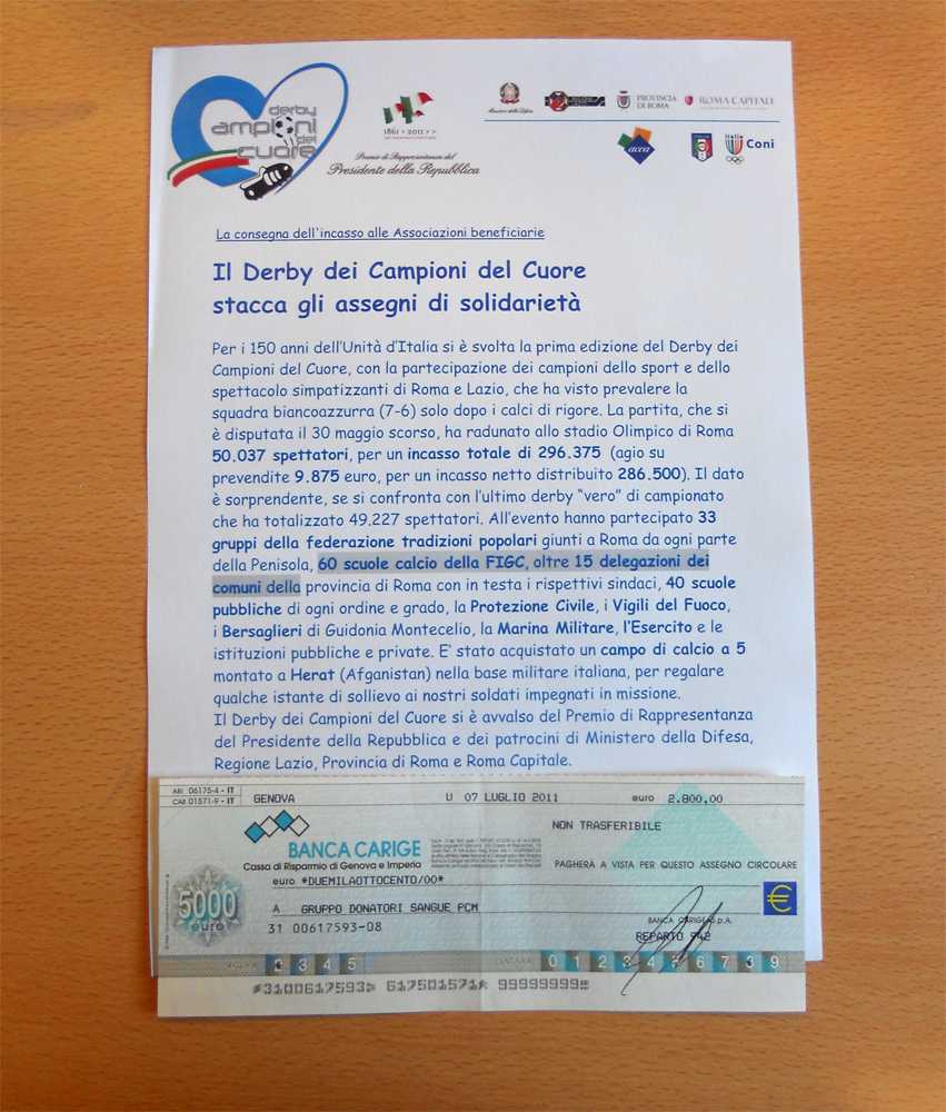 Questo è l’assegno che ci è stato consegnato.