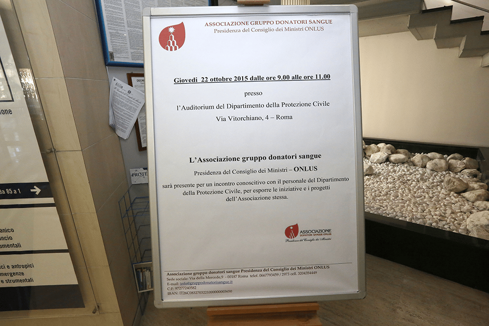 L’Associazione ha incontrato il personale del Dipartimento della Protezione Civile giovedì 22 ottobre 2015 presso l’Auditorium del Dipartimento a Via Vitorchiano 4 per far conoscere le iniziative e i progetti dell’associazione.