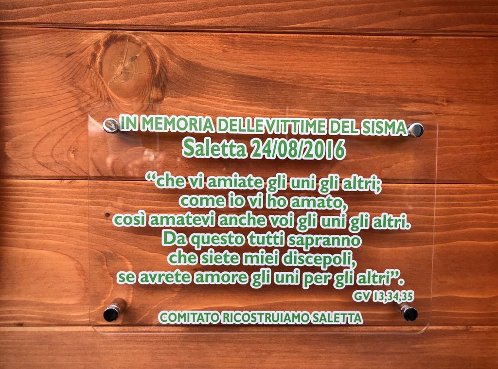- targa “in memoria delle vittime del Sisma Saletta 24/08/2016” – da parte del Comitato Ricostruiamo Saletta