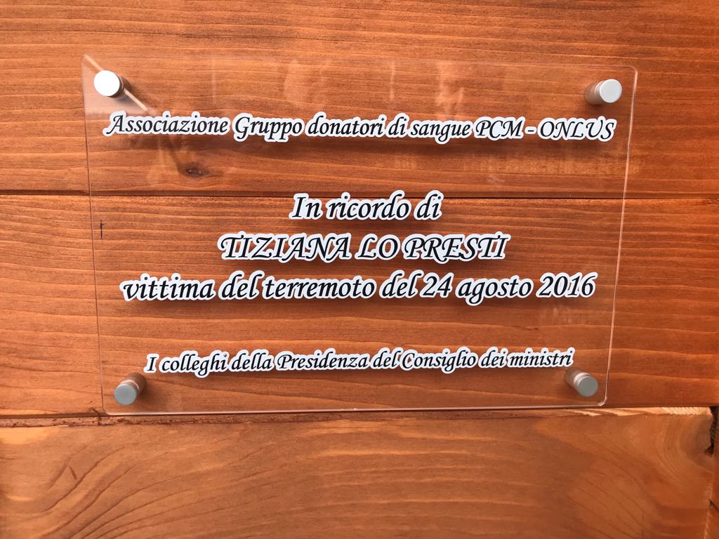 - targa “in ricordo di Tiziana Lo Presti” – da parte dei colleghi della Presidenza del Consiglio dei ministri