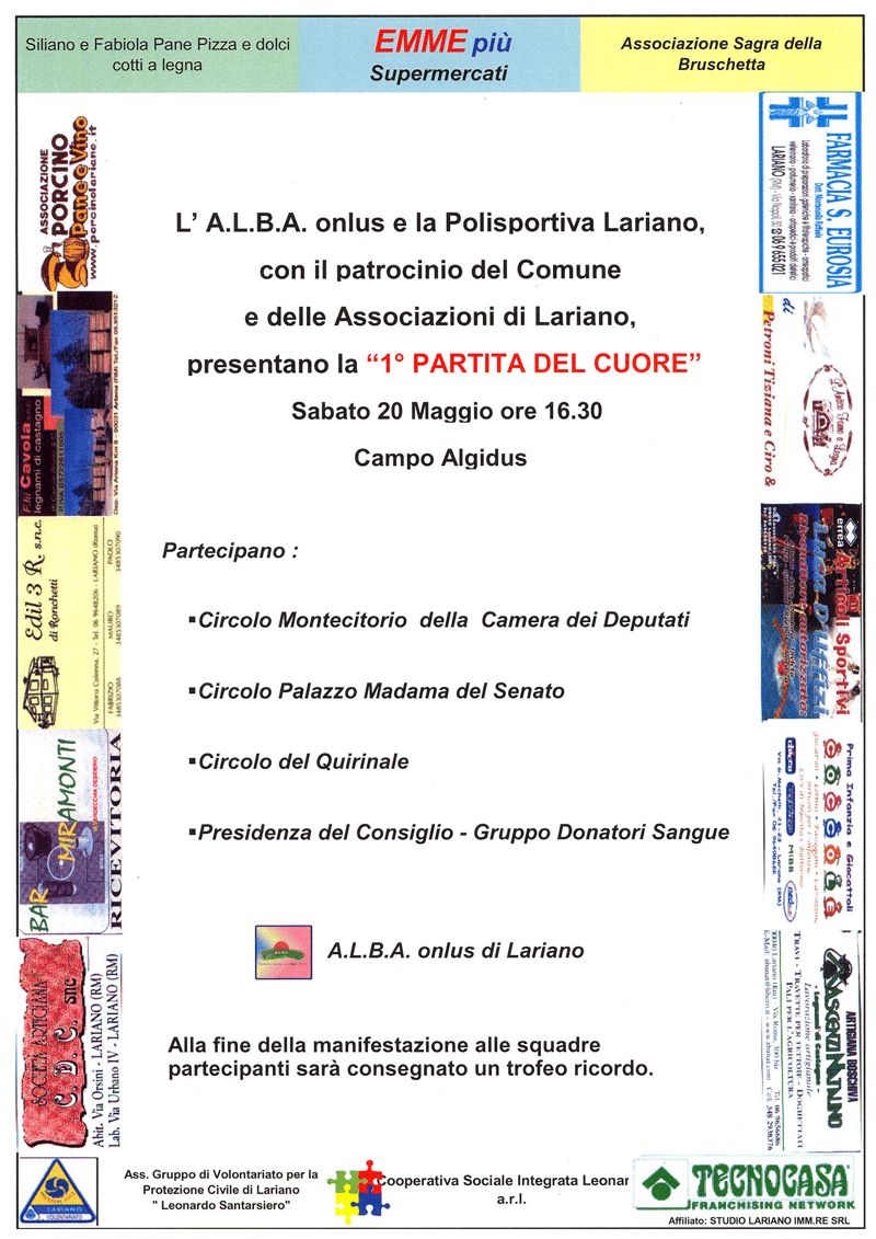 L’evento è stato organizzato da A.L.B.A. onlus e dalla Polisportiva Lariano con il patrocinio del Comune di Lariano.
