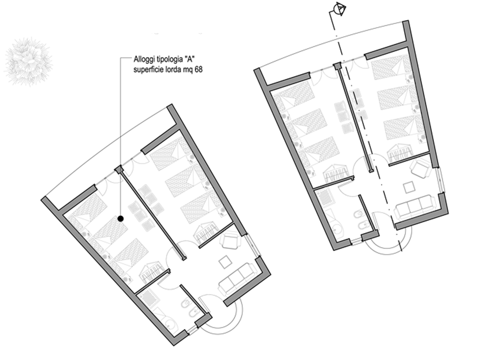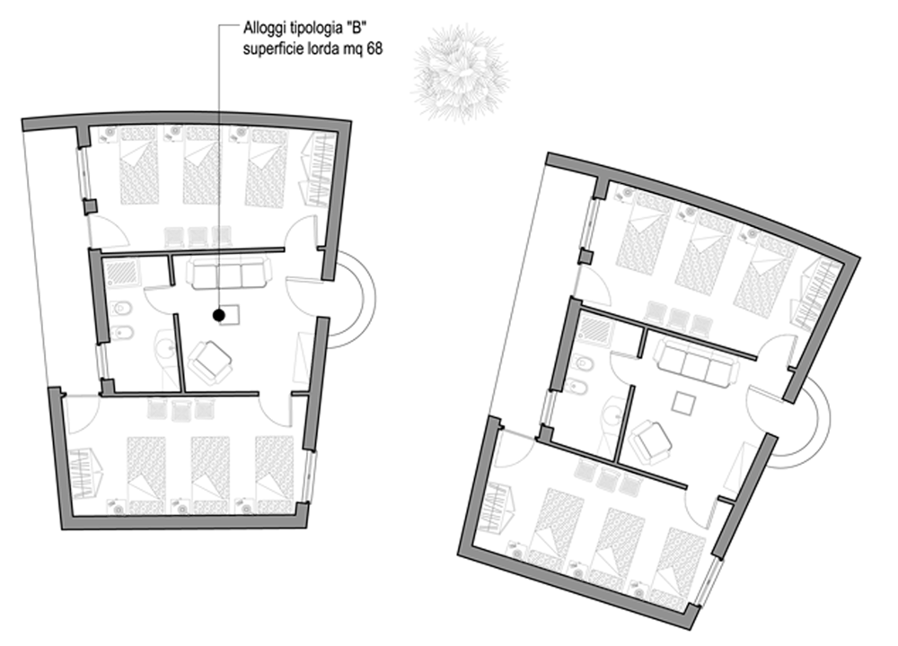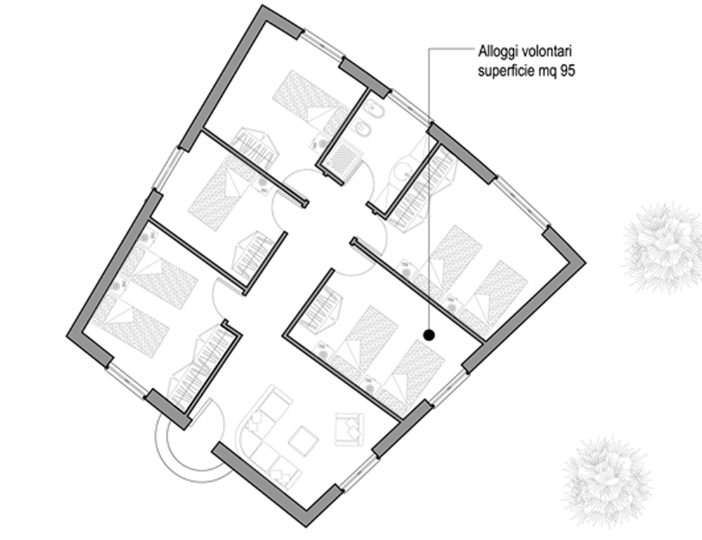 - cinque costruzioni disposte a raggio intorno l’edificio principale di circa 70 mq ognuna che costituiranno gli alloggi per le ragazze e i ragazzi cardiopatici