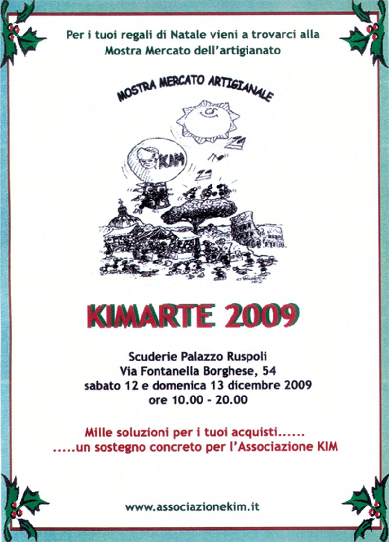 L’associazione KIM onlus organizza una mostra mercato di curiosità e prodotti di artigianato per sostenere le attività di aiuto e assistenza ai bambini italiani e stranieri che si trovano in situazione di grave emergenza sanitaria.