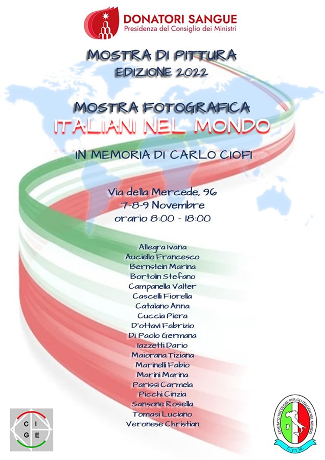 L’associazione “Donatori sangue della Presidenza del Consiglio dei Ministri” ha organizzato una mostra di pittura in memoria di Carlo Ciofi dedicata al tema degli Italiani nel mondo.