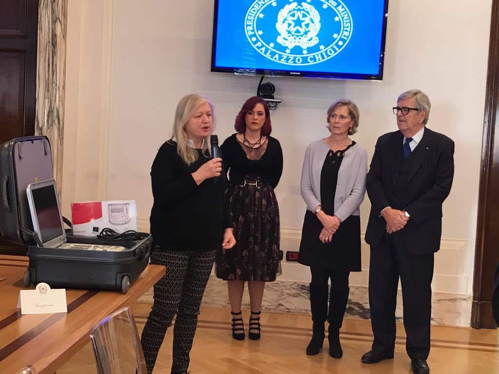 Al termine della cerimonia di premiazione il Gruppo Donatori Sangue PCM ha donato un ecografo portatile all’Associazione Milena, per le miocardiopatie al Centro DAD di Quhia, grazie ai fondi del progetto “Mano amica” della Fondazione BNL Gruppo BNP Paribas